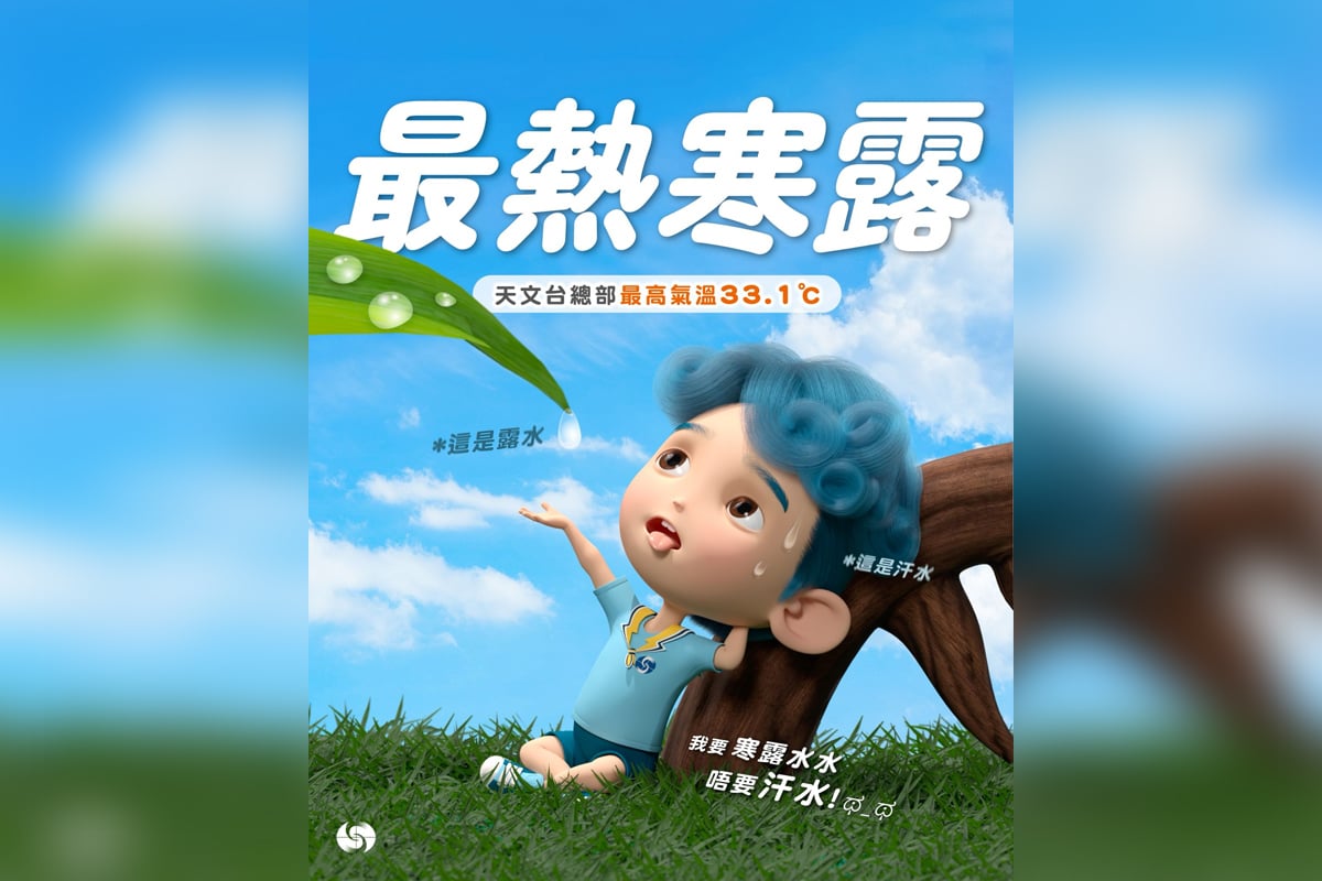 天文台今日(8日)下午在社交平台發文,指天文台總部今日最高氣溫達33.1℃,是有紀錄以來最熱「寒露」。