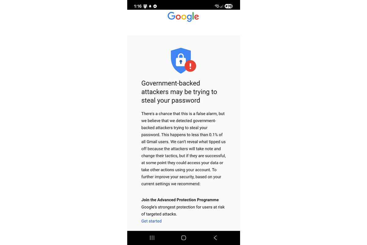 在澳洲的前立法會議員許智峯在社交網站發文,引述Google指這情況只會發生在少於0.1%的 Google 用戶身上,呼籲他們加強網上保安措施。