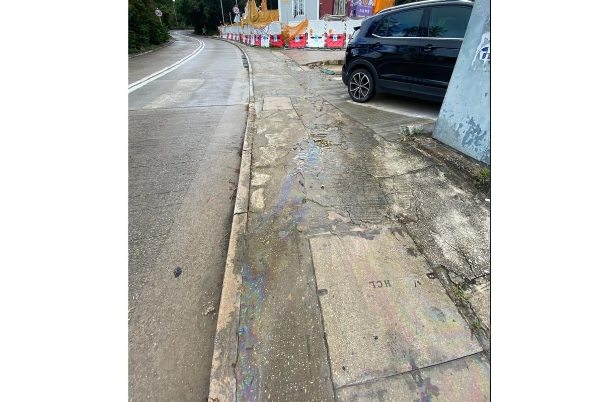 嶼南水牛學會主席梁韶華(牛媽)本月6日在社交網站指,當日爆喉後路面出現油污,現場人士指已用化油濟沖擦,但路面存留大量油跡,質疑地盤處理失當,並擔心油污隨天雨經雨水渠進入濕地。