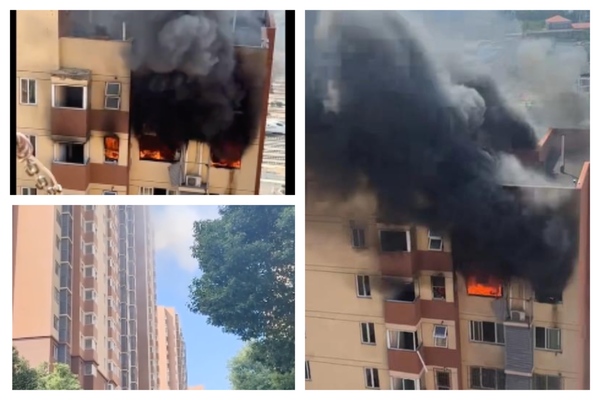 影片顯示,起火居民家窗口濃煙瀰漫,從對面居民樓可看到房間內有明火燃燒。有網民表示,他家距事發地近1公里,現場有巨響傳出。