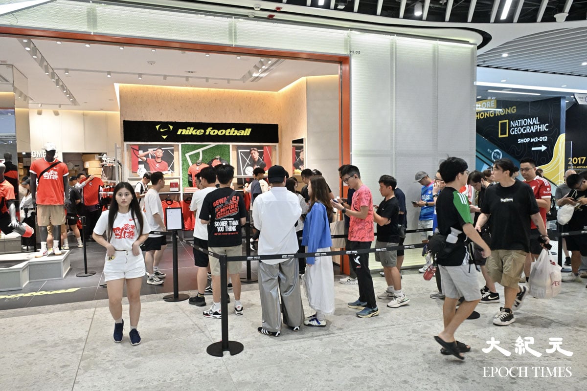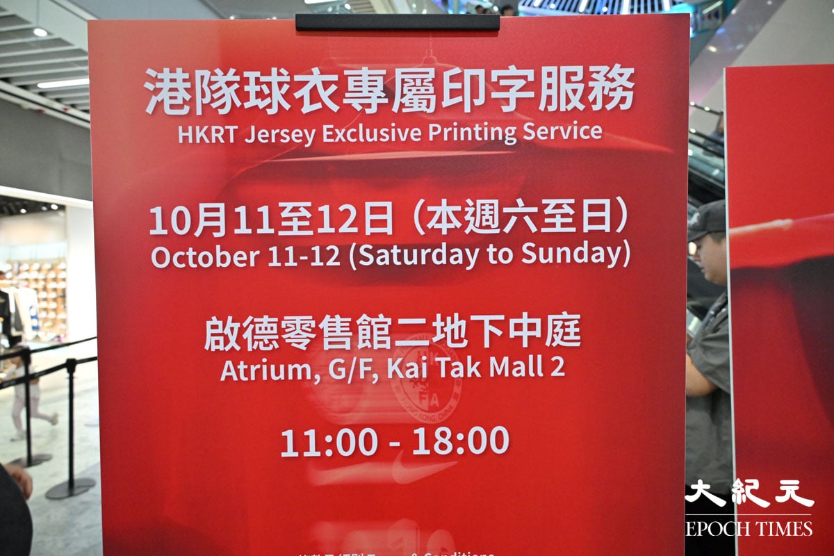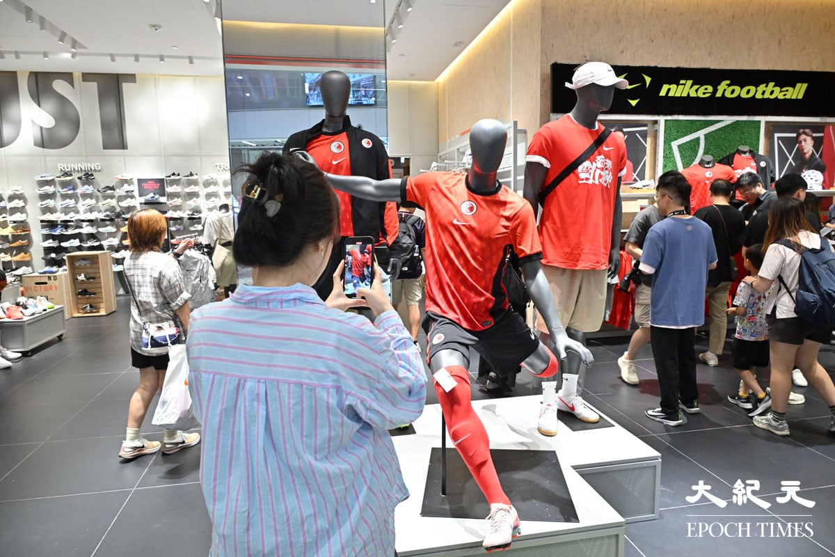 在啟德零售館NIKE專賣店外,大批球迷排隊購買香港隊球衣,為香港隊打氣。準備14日入場的球迷、退休人士馬先生下午排隊半小時,稱是第二次到場,買到一件599元的球衣。他盛讚該店推出的款式漂亮,「幾搶眼」,用料比較上乘。又透過本來想省錢,但在兒子要求下再到場購買。不過,以前從事製衣的他覺得球衣的手工有點瑕疵,曾經要求更換,認為有關方面可以改進。