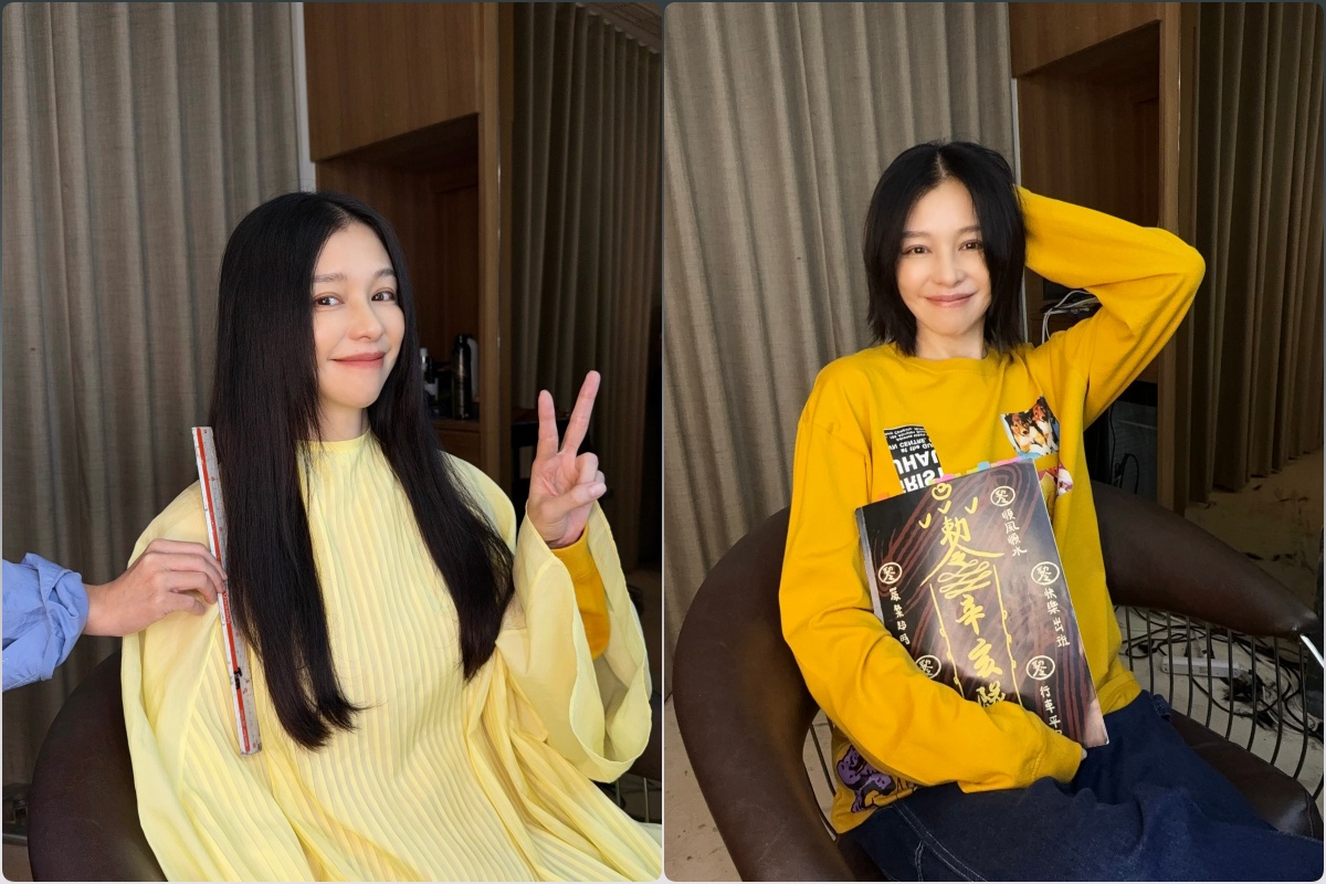 她透露自己的頭髮長得很快,剪短並不會特別心疼,這回一剪更長達30厘米,但當剪下第一刀時,她還是忍不住「嗯」了一聲,再回頭看到滿地長髮時,她手心在冒汗,似乎是要準備迎接一個新角色的挑戰而覺得興奮。