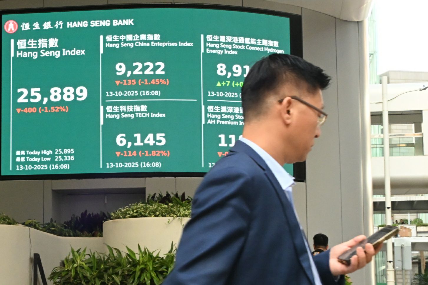 美中貿易戰驟趨緊張,港股顯著低收。恒指今(13日)早低開656點,盤中最多曾挫954點,收市報25,889點,下滑400點(即跌1.5%),成交額4,904億。國指跌1.5%、科指走低1.8%。
