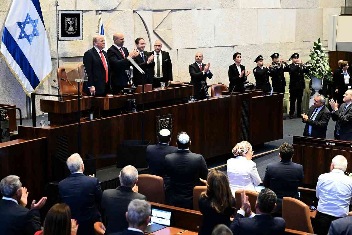 特朗普計劃在國會會見人質家屬後發表演說。上一次在以色列國會發表演說的美國總統是2008年的喬治布殊(George W. Bush)。