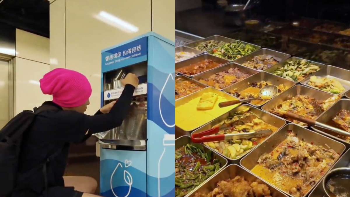 該網紅在影片中介紹,在香港便利店買一瓶水要十幾元港幣,但是香港地鐵站裏面有免費的飲水機,帶上一個膠樽,「裝一瓶可以喝一天」。而且地鐵站裏還有免費的充電服務,能省下租借外置充電器的錢。