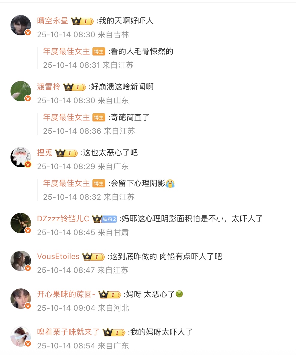 網民紛紛驚呼,「好恐怖」「好噁心」「看的人毛骨悚然的」。