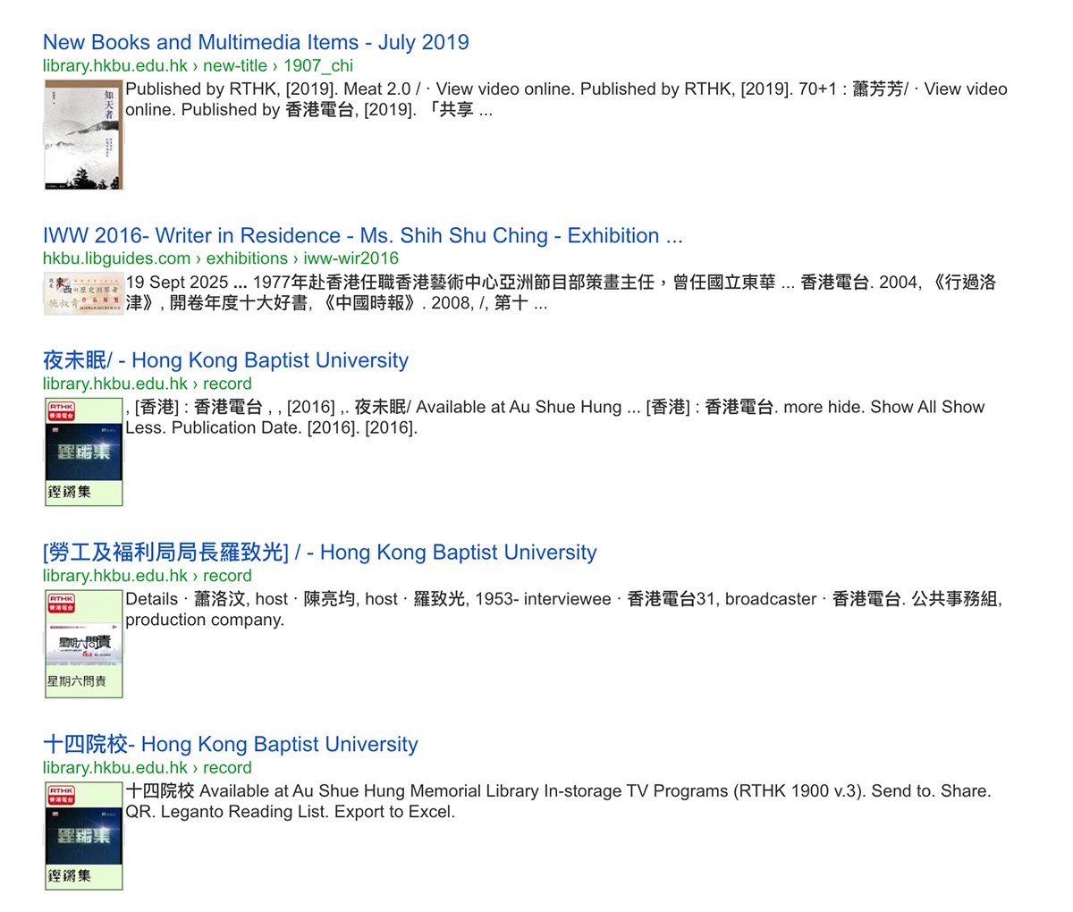 本報15日翻查浸大圖書館網站,以「香港電台」為關鍵字搜尋時,僅有26筆紀錄,是港台節目的紀錄更少,而且非常零星及不完整。例如目錄中顯示有2006年香港電台電視部與懲教署聯合製作的《鐵窗邊緣》,仍然可供借閱,但未有其它年份製作的《鐵窗邊緣》。