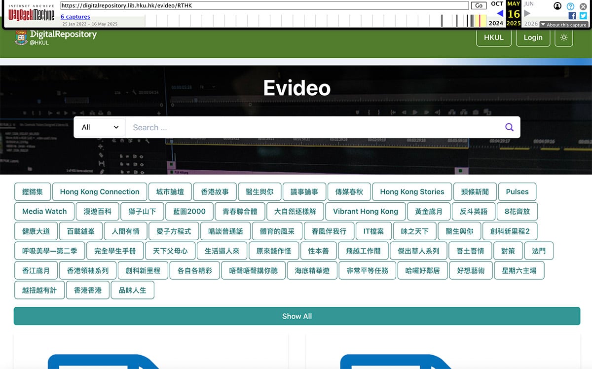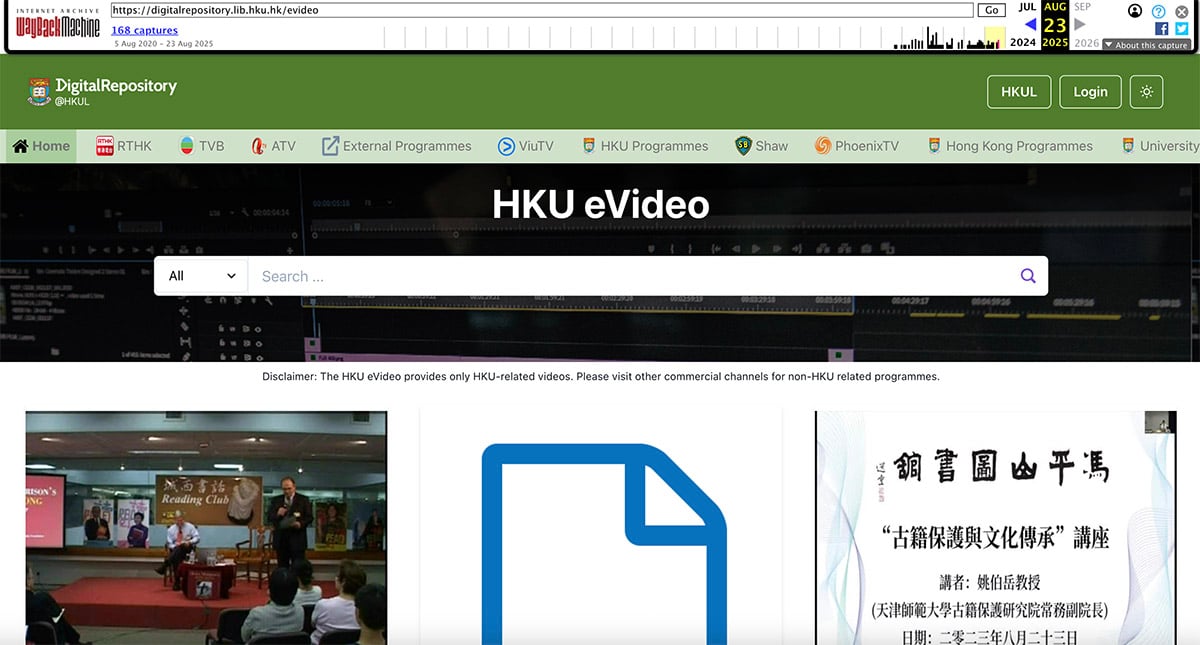 翻查網頁存檔網站「Wayback Machine」,港大圖書館數碼典藏的網站到今年8月,仍然顯示有香港電台在內的香港各傳媒機構的節目可供查閱。