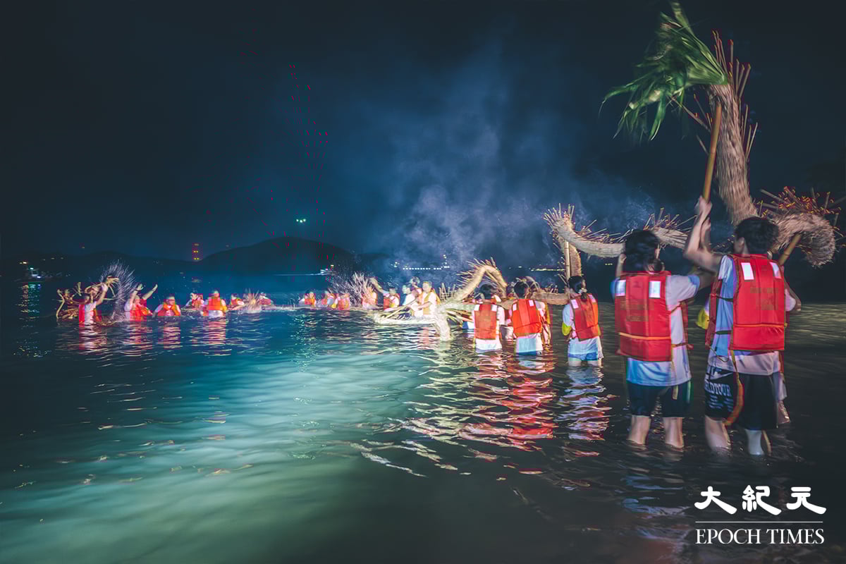 火龍巡遊完村內後,隊伍會移師至華富邨,再經瀑布灣道前往瀑布灣公園稍作休息。最後一站是瀑布灣海灘,進行名為「龍歸滄海」的儀式。此儀式象徵將火龍送回大自然,完成使命。工作人員會穿上救生衣,將火龍移至海中,熄滅香火,然後打撈上岸作後續處理。據一位資深工作人員透露,早年未有環保條例時,火龍會被送至深海,讓自然回收,如今則以更環保方式進行。