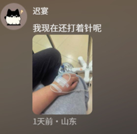 一名學生還曬出輸液的照片表示,「我現在還打著針呢。」