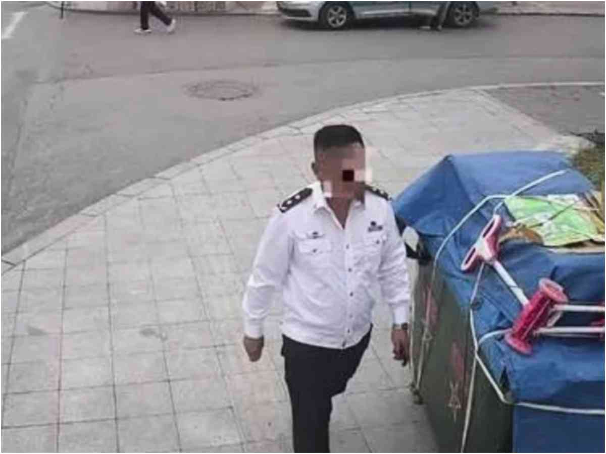 監控影片顯示,這名冒充「省公安廳領導」的男子,身穿白色警用制服,大搖大擺地走進派出所,對一名警察說,「你給我找過車鑰匙,kai局給你打的電話。」