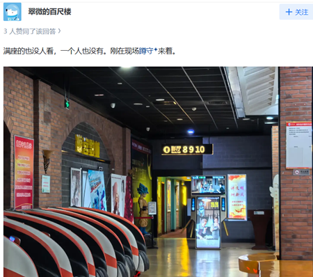 報道說,大部份的場次都是要麼沒人買,要麼就滿座了。網民猜測滿座應該是強制性給的任務,像是影院自己設置的。剩下放映的場次購票人數就正常多了,購票人數不超過10人。