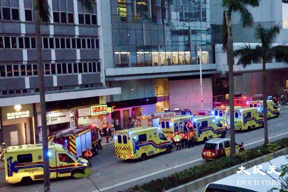 高級救護主任袁浩章表示,在火警期間,救護員共協助4名傷者,包括3男一女。在涉事大廈裏面3樓至4樓梯間發現的男傷者傷勢較為嚴重,他有明顯的頭部受傷,還因為吸入濃煙引致呼吸困難。另外3人傷勢較為輕微,分別因為吸入濃煙,引致不同程度的呼吸困難。4位傷者由救護員在現場初步調查,由救護車送到瑪麗醫院進一步治理,他們送院期間清醒。