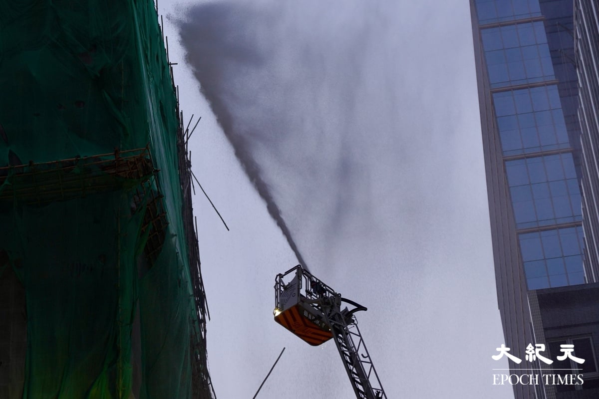 他又說,由於火舌波及對面及旁邊的大廈,同時消防收到市民的救助個案,所以在消防到場的8分鐘,將火警升為三級,以調派額外資源到場滅火及救援。行動中,消防共調派了36輛消防車、15輛救護車,一共出動了184名消防員及救護員,動用4條喉及隊煙帽隊灌救。消防亦使用了2支鋼梯水塔,向起火大廈外圍射水滅火、降溫,並出動無人機在大廈外圍監察火勢。