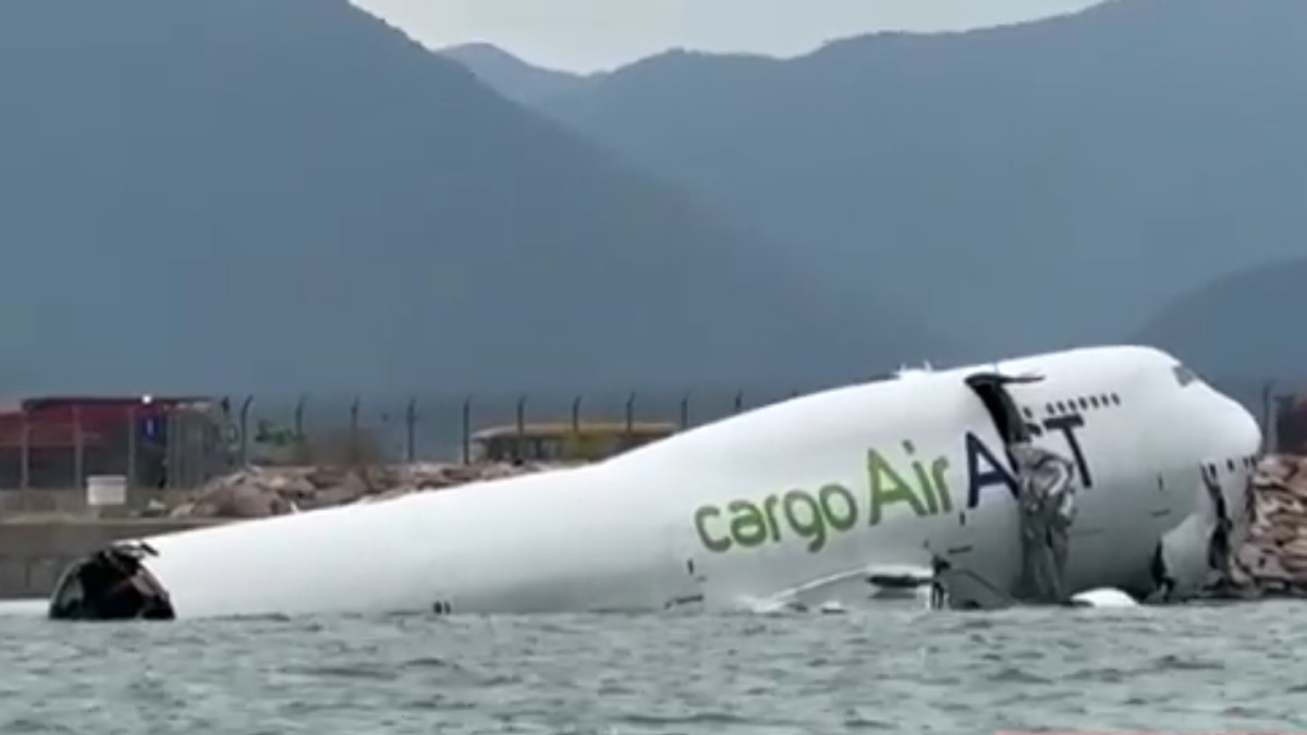 社交平台LIHKG上流傳的照片顯示,貨機部份機身傾斜入海,僅機尾與上方機體露出水面。網民稱,飛機在第三跑道中段偏離跑道,撞上地勤車後滑入海中。