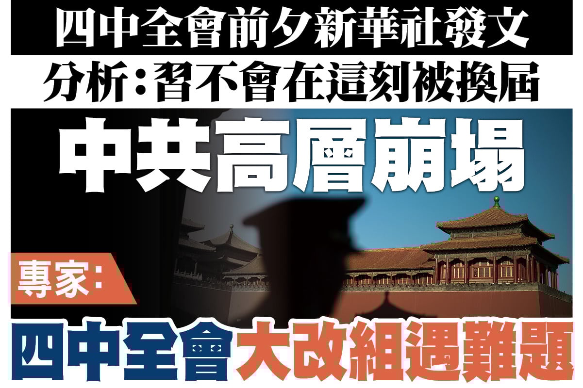 中共今天(20日)在北京召開二十屆四中全會,官方宣傳其主要議題是規劃未來5年經濟發展的「十五五」,但中共高層人事塌方及大改組的情況更受到外界關注。新華社在四中全會開幕幾小時前發文有一不尋常現象,,分析認為,這是一個重要的訊號:習不會在這刻被換屆。