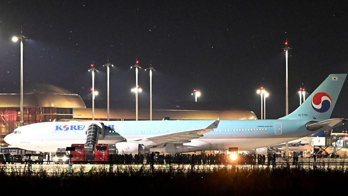 上周末遣返的韓人一登上包機時,就被警方逮捕,包機抵達韓國後,戴著手銬押下飛機。