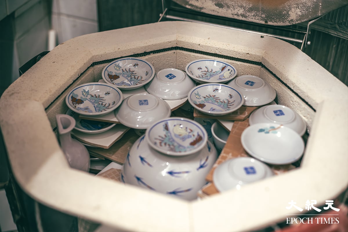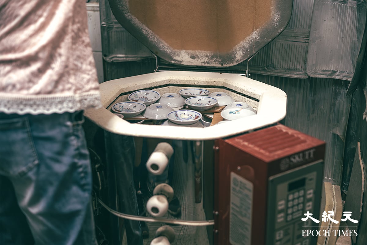 嬌姐還開設工作坊,讓有興趣的朋友學習彩瓷創作。店內設有烤爐,供學員、顧客及她自己燒製作品。她向我簡單講解「陶瓷」與「彩瓷」的分別:陶瓷是以瓷泥製成器皿,再加釉燒製;彩瓷則是在瓷器上繪畫圖案,使到器皿更美艷動人。現今多用已印有線條的印水紙印上白瓷作底稿再上色,但嬌姐仍堅持傳統,每件作品皆由她親手一筆一筆繪製,正因如此,每件彩瓷都是獨一無二,彌足珍貴。
