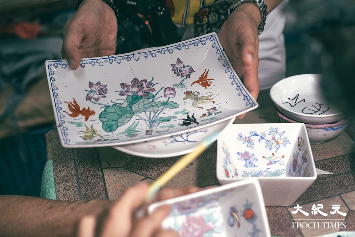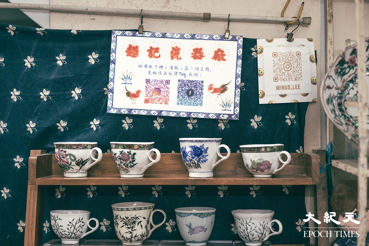 隨着歲月流轉,丈夫病逝後,嬌姐因年紀漸長,加上行業變遷,現在只在本鋪售賣作品。他們的彩瓷以中式傳統風格為主,如梅蘭菊竹、花鳥魚蟲、古代孩童等,也有些西式風格的杯子,充滿古典韻味。