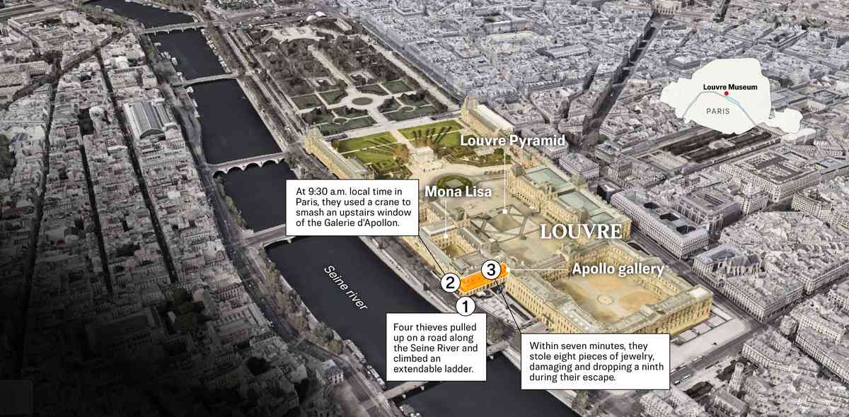 目前,特別調查人員正在爭分奪秒地追捕涉案人員。讓我們來了解這宗前後持續僅短短幾分鐘的世紀大劫案的始末,以及專家們為何擔心被盜的珍寶可能永遠無法找回。