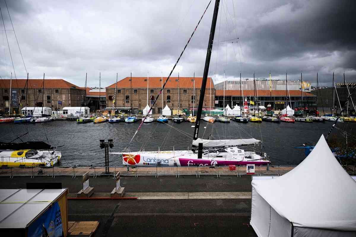 2025年10月23日,原定在西北部城市勒阿弗爾(le havre)舉行的一場雙人帆船賽,因風暴「班哲文」(Benjamin)而暫停。(Loic Venance/AFP via Getty Images)