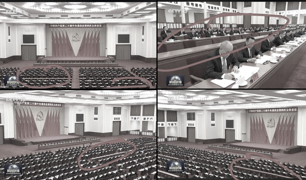 中共二十屆四中全會昨天(23日)閉幕,央視畫面顯示,會場出現幾排空位,引發猜測。本次會議缺席者眾,那些消失的高官去向引人關注。