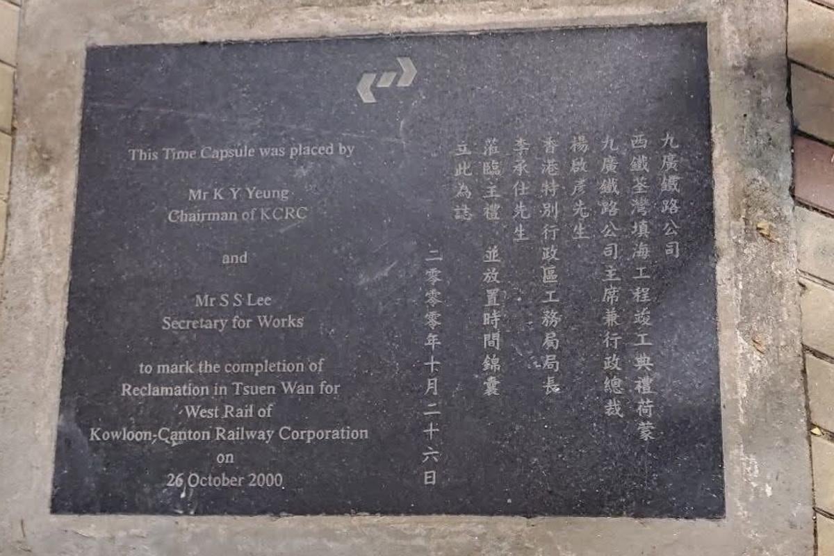 西鐵荃灣填海工程竣工之際,九廣鐵路公司在2000年10月26日的典禮上,主禮嘉賓將多項紀念品放進時間錦囊,預定今年打開。近日有網民關注,在周日(26日)典禮25周年之際,未見有任何儀式。本報正向港鐵查詢。