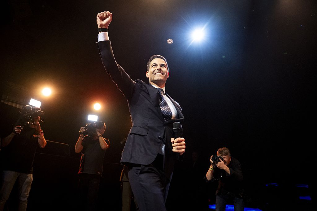 在初步統計結果出爐後,D66領袖傑騰向歡騰的人群宣告:「我們做到了!」