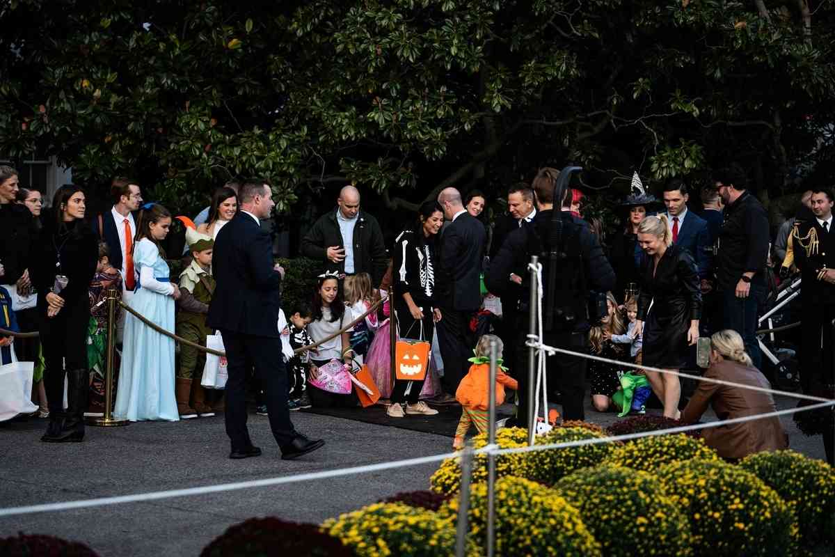 孩子們裝扮成各種角色,從恐龍、太空人到公主不一而足。年齡層從父母抱著的嬰兒,到自己走到總統和第一夫人面前的學齡前兒童都有。年紀最大的「討糖者」已是十多歲的青少年。