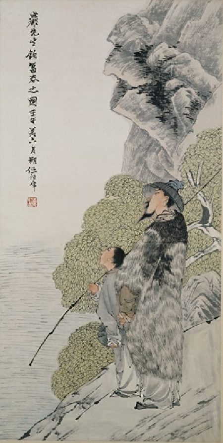 嚴子陵不慕榮寵,隱居富春江畔,披羊裘垂釣,自號「富春漁父」。