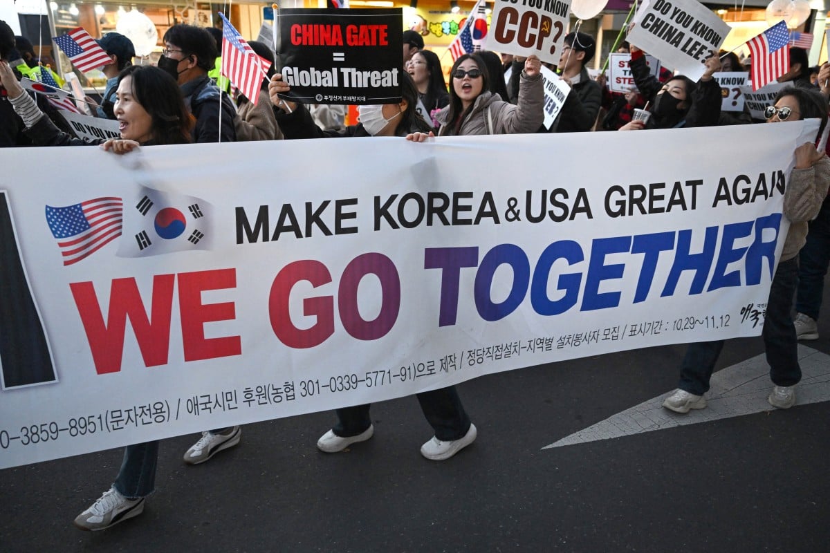 在韓國,一邊廂有總統李在明公開熱烈歡迎特朗普的訪問,展現加強與美國關係的意願;一邊廂街頭掀起大規模反中共示威。大批年青人聚集於慶州、首爾明洞及其他重點地區,呼喊反中共口號,批評中共霸權行為,包括在台灣、新疆、香港問題上的政策,以及對南韓經濟、國家主權與安全脅迫。