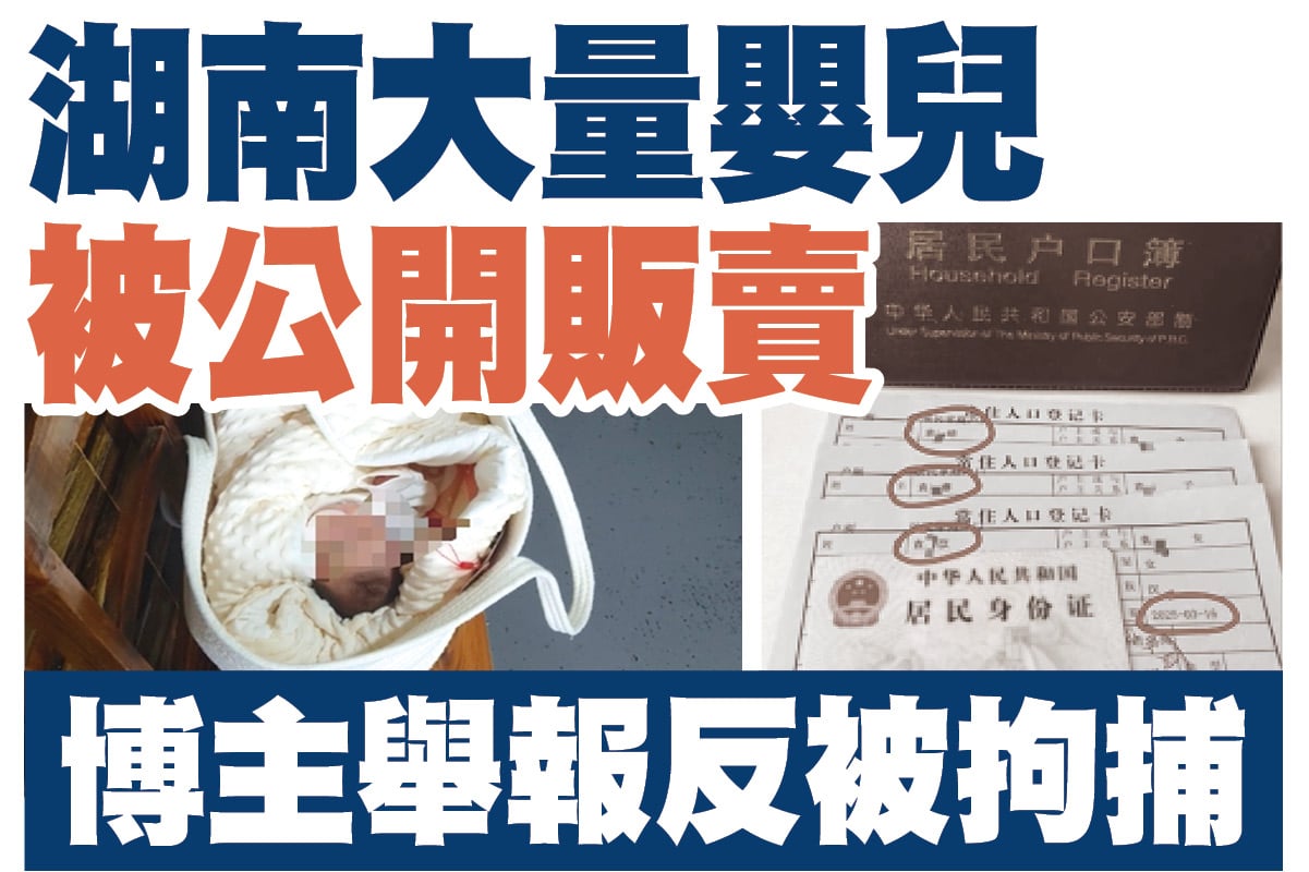 中國大陸長期存在嬰兒販賣罪行,官方經常不作為,甚至參與犯罪。大陸博主公開舉報並幫助捉拿湖南懷化販賣嬰兒的「中介」,自己反被公安拘捕。有知情網民揭露,當地官方充當保護傘。