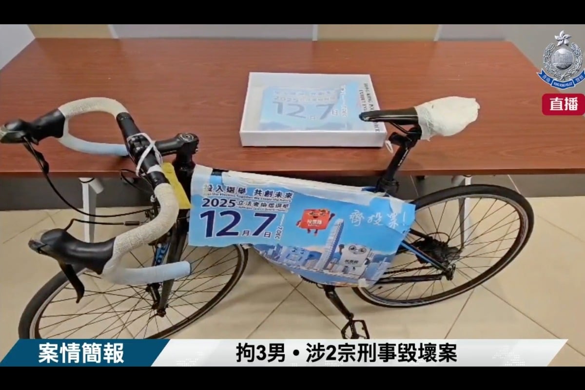 警方拘捕3名14至15歲男子,指他們涉嫌刑事毀壞,撕走3張立法會選舉宣傳海報。他們現正保釋候查。
