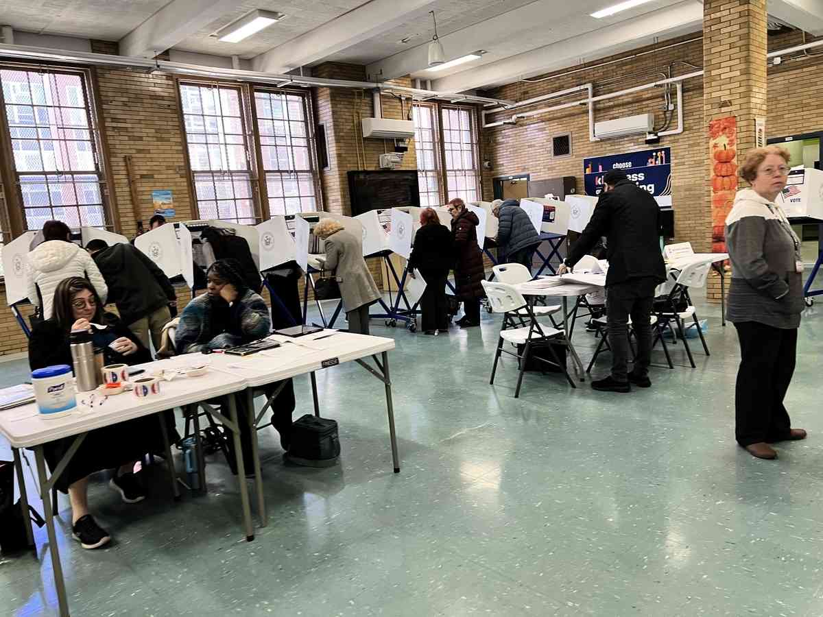在紐約王后區法拉盛214小學投票站,包括華裔在內的選民投票絡繹不絕,截止到早上10點半,有大約400名選民投票。票站工作人員說:非常踴躍。