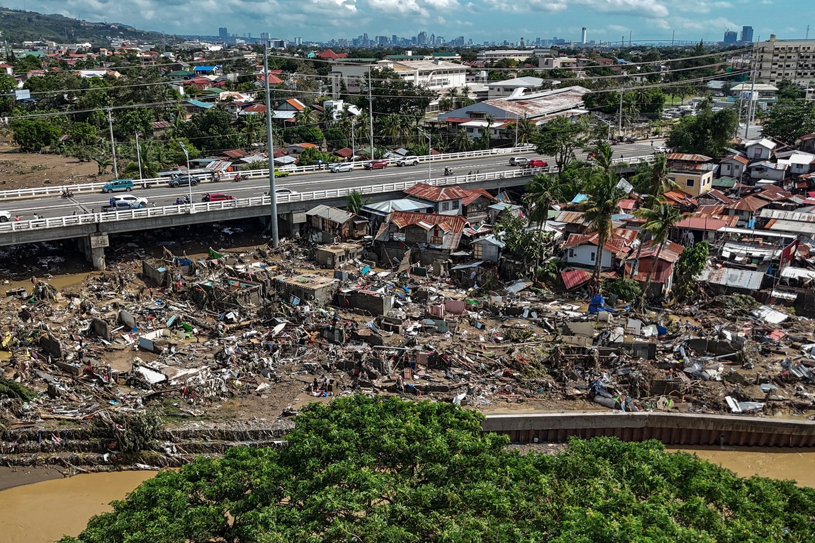 2025年11月5日,颱風「海鷗」過境後,菲律賓宿務省塔利賽市(Talisay)遭到毀滅性破壞,許多建築淪為一片廢墟。(Jam Sta Rosa/AFP via Getty Images)