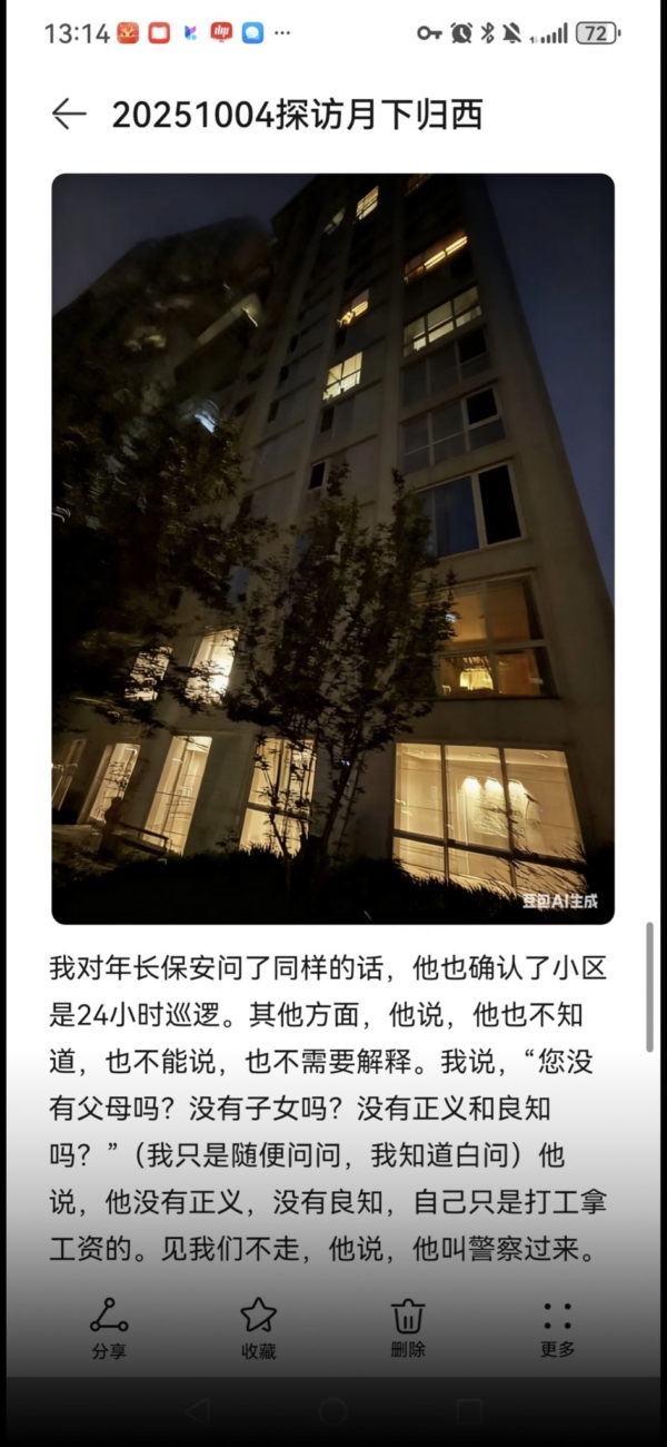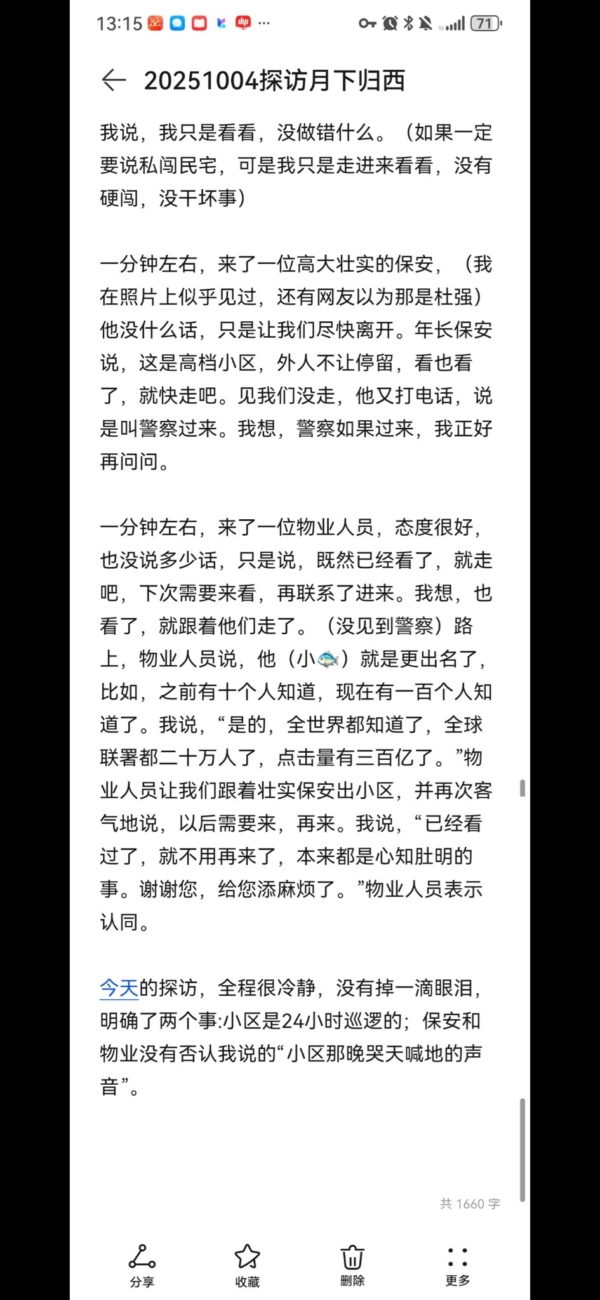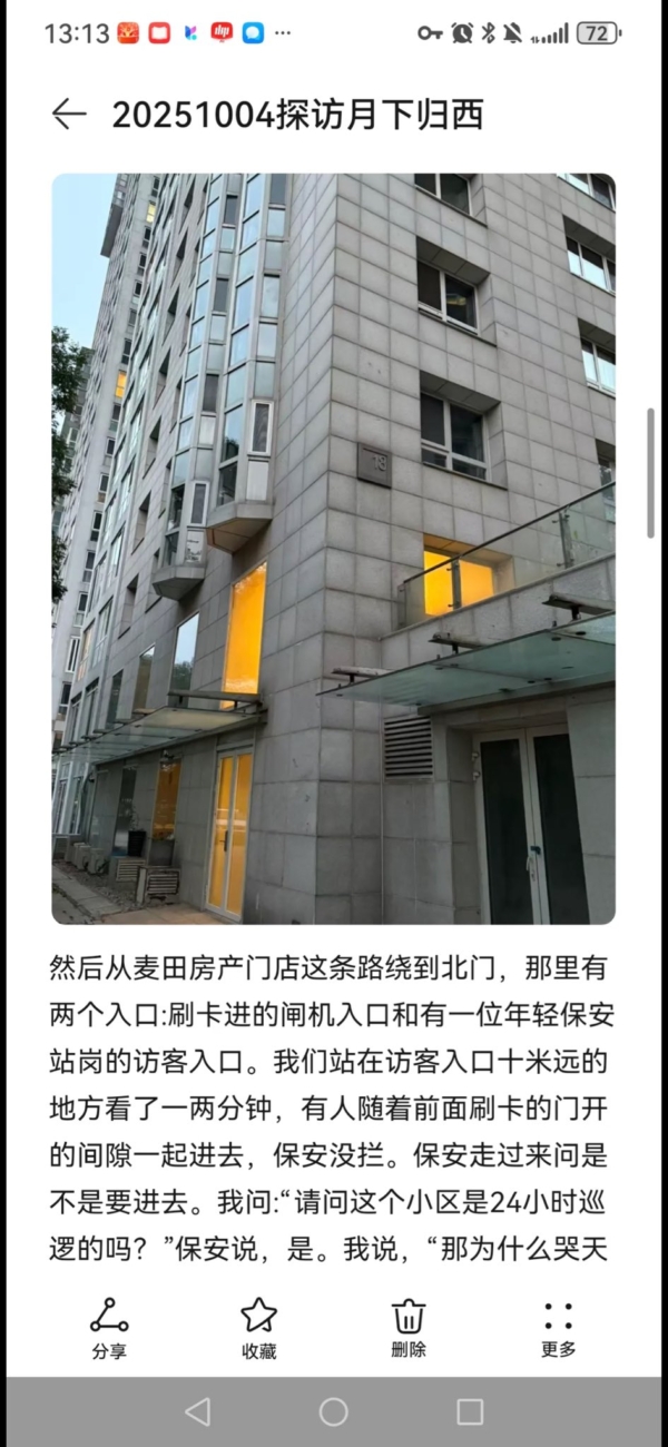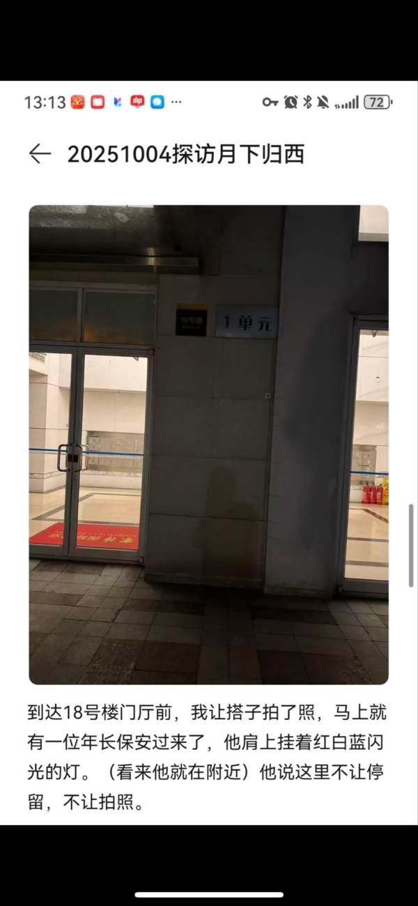 于朦朧粉絲發文記錄夜探陽光上東小區經過。(網頁截圖)