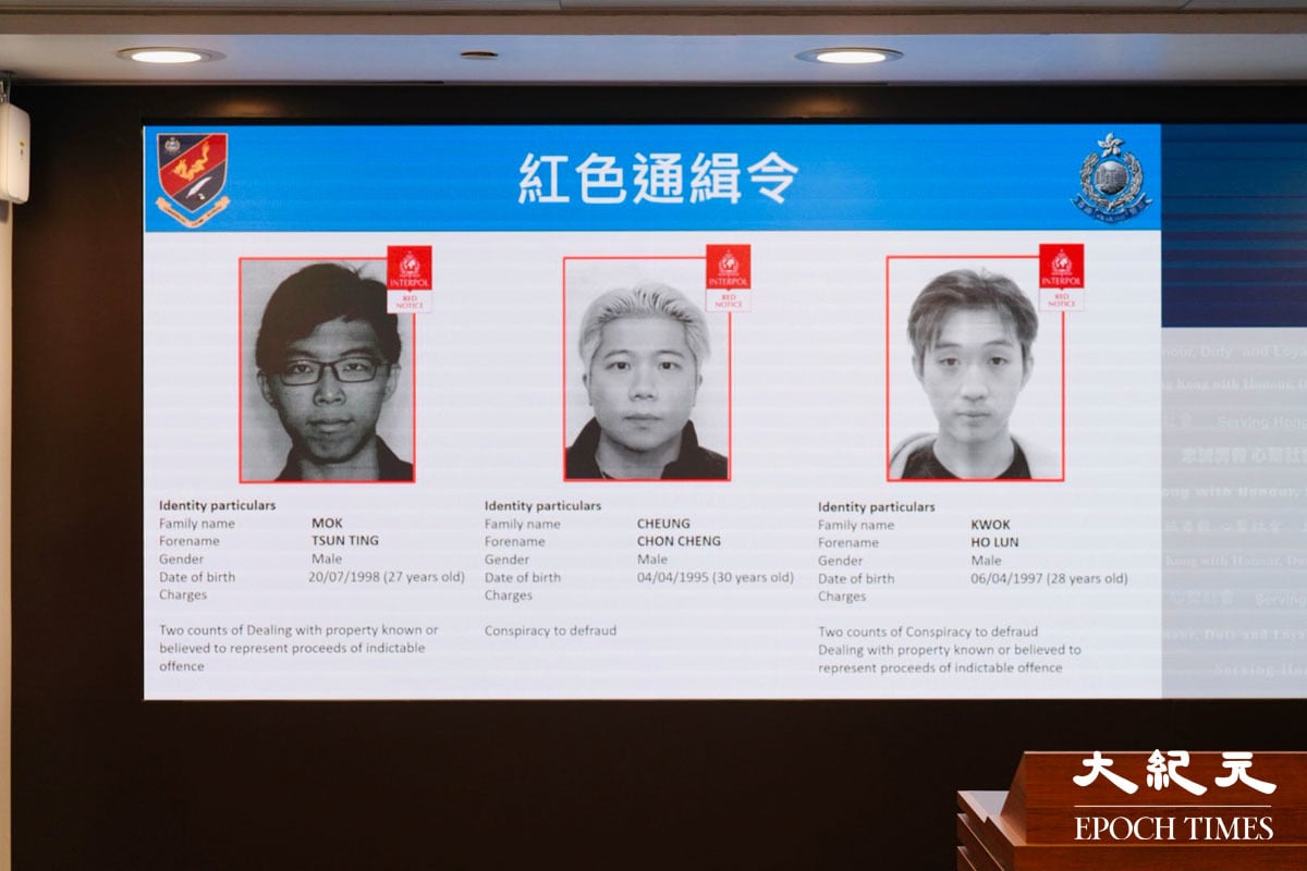 孔慶勳又說,部份涉案人士在警方拘捕行動前已潛逃海外,警方已透過國際刑警組織發出紅色通緝令,追捕2名集團主腦及1名骨幹成員,並將與國際刑警及海外執法機構維持緊密聯繫,全力緝捕。