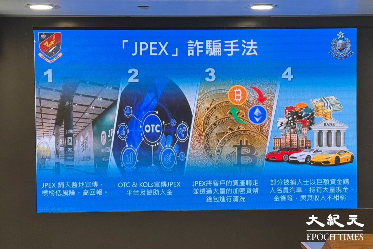 JPE社交平台X自2021年起在香港大肆宣傳。2023年9月13日,證監會點名警告JPEX存在六大疑點,包括虛假宣稱持牌或申請牌照、產品宣稱極高回報,以及依賴KOL及OTC店進行宣傳。隨後警方展開拘捕,涉案者包括經營OTC店的網紅林作、陳怡、「幣少」助手莫浚廷、歌手dR.X、朱公子及KOL「湘湘」等。@