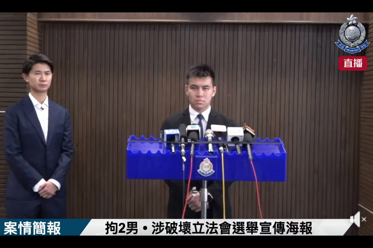 香港警方前日(5日)在土瓜灣及青衣分別拘捕兩名男子,涉嫌盜竊及刑事毀壞立法會選舉宣傳海報。涉案人士包括一名45歲男子及一名71歲男子,兩人均被扣留調查。