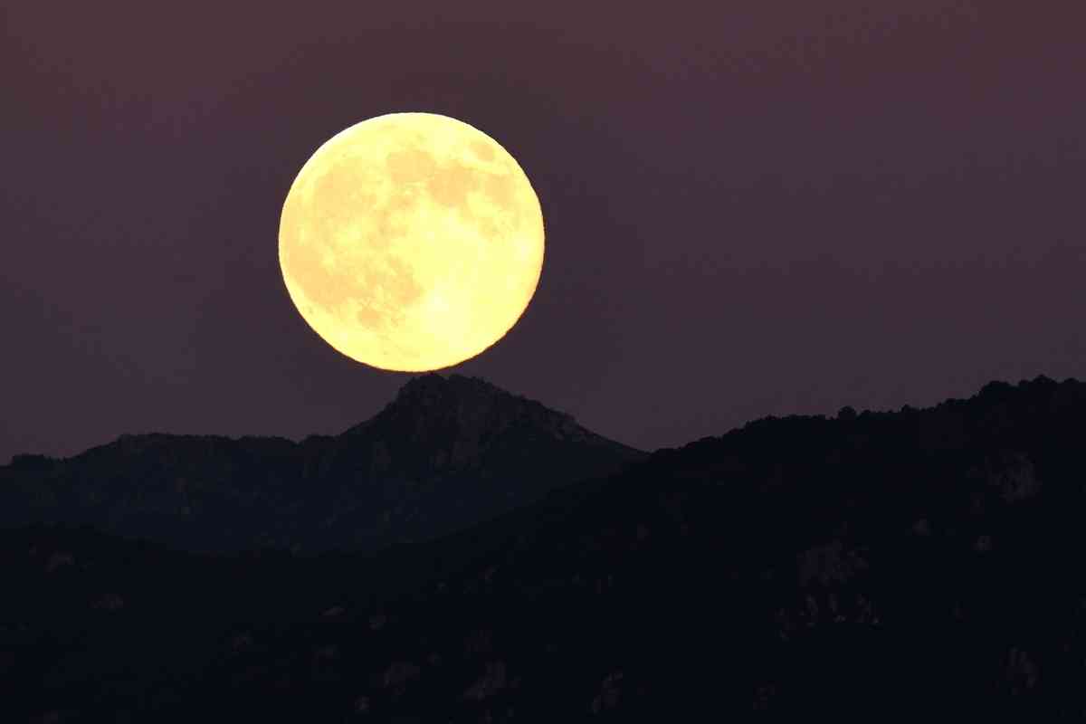 2025年11月5日,一輪皎潔的圓月高懸在法屬科西嘉島附近的科西嘉山脈上空。(Pascal Pochard-Casabianca/AFP via Getty Images)