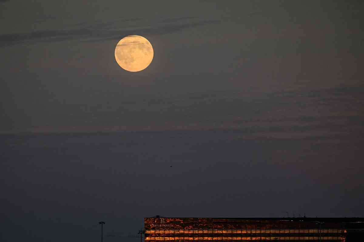 2025年11月5日,卡塔爾首都多哈上空出現的超級月亮。( Mahmud Hams/AFP via Getty Images)