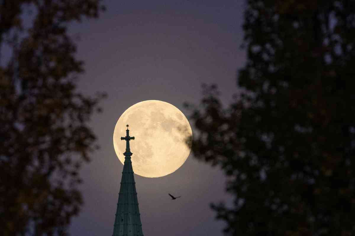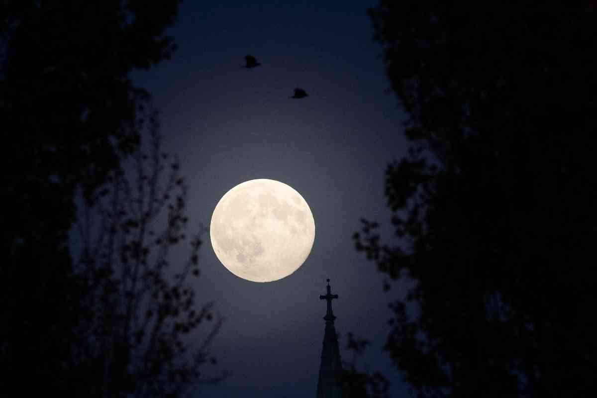 2025年11月5日,一輪超級月亮從法國里昂市(Lyon)上空緩緩升起。(Olivier Chassignole/AFP via Getty Images)