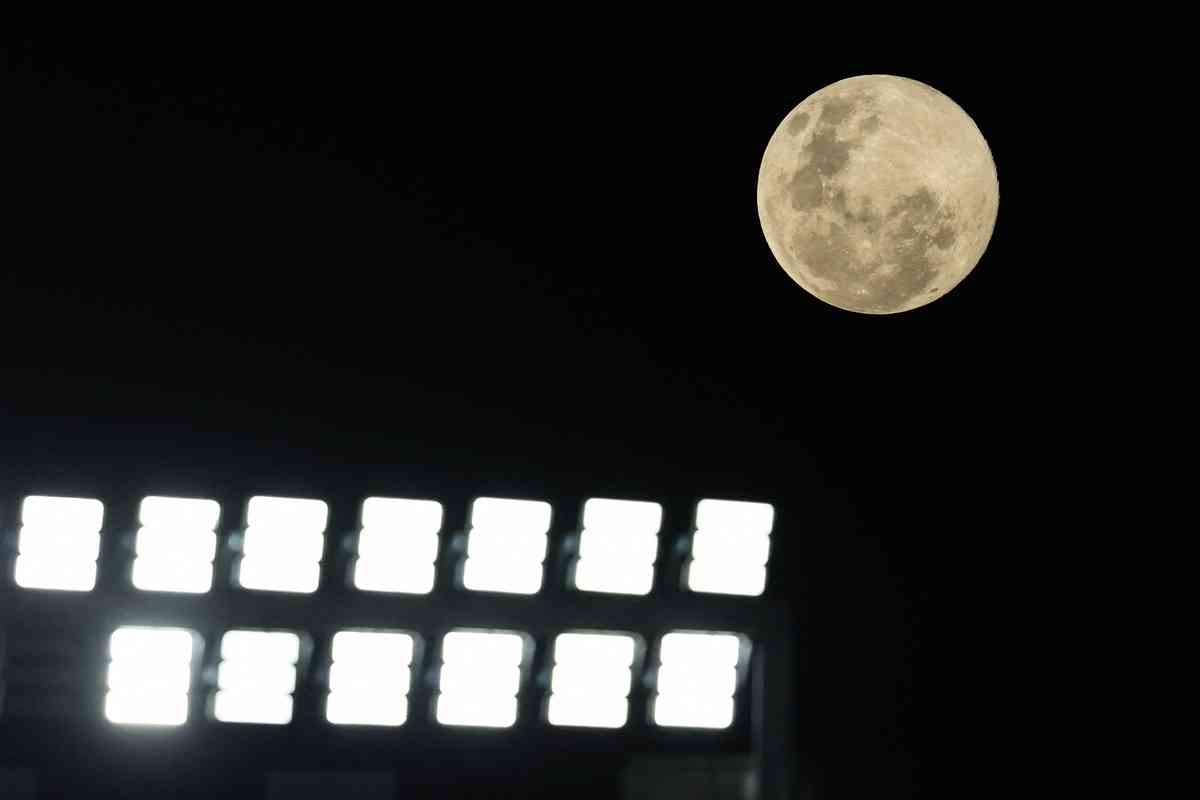 2025年11月5日,紐西蘭奧克蘭伊甸公園(Eden Park)上空出現的超級月亮。(Michael Bradley/AFP via Getty Images)