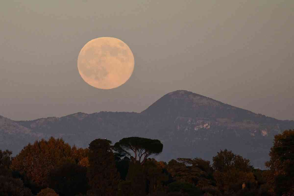 2025年11月5日,意大利羅馬附近的一座山上出現的超級月亮。(Alberto Pizzoli/AFP via Getty Images)