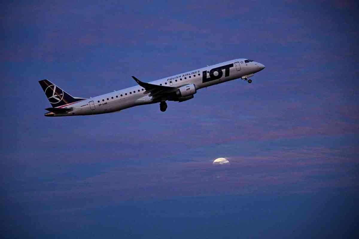 2025年11月5日,波蘭航空公司LOT的一架客機從隱藏在雲層後面的超級月亮旁飛過。(Sergei Gapon/AFP via Getty Images)