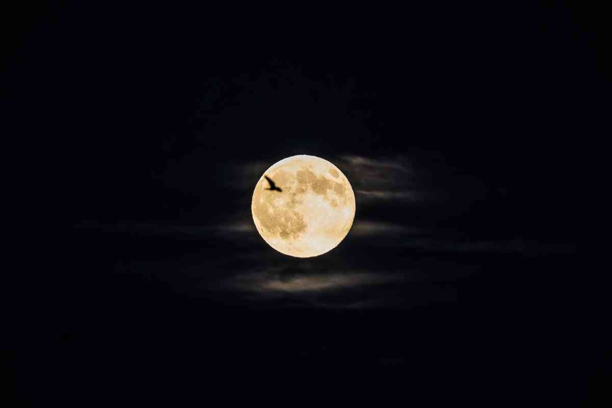 2025年11月5日,一隻鳥從法國里昂市(Lyon)上空的滿月前飛過。(Jeff Pachoud/AFP via Getty Images)