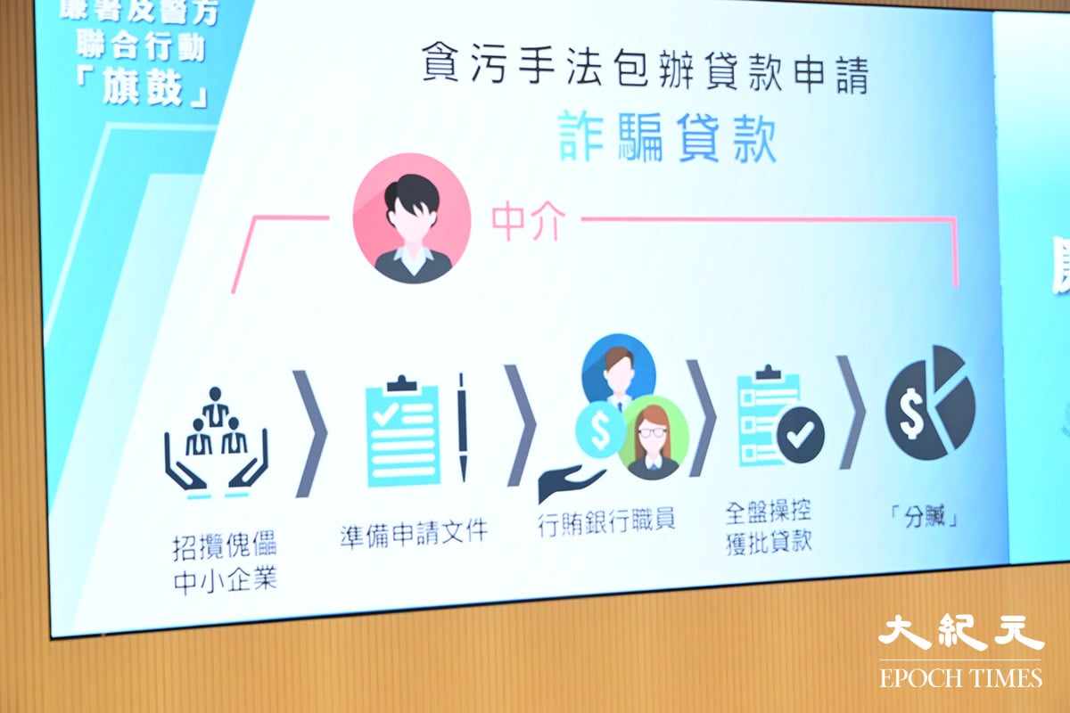 余續指,中介公司一手包辦整個申請過程,包括招攬東主、行賄銀行職員、開設銀行戶口、提交貸款申請文件,直至銀行批出貸款。調查顯示,涉案中介在過去3年招攬不同人士假扮中小企僱主,向銀行申請政府擔保的各類型貸款,但涉案中小企業大部份沒有實質業務,只是空殼公司。