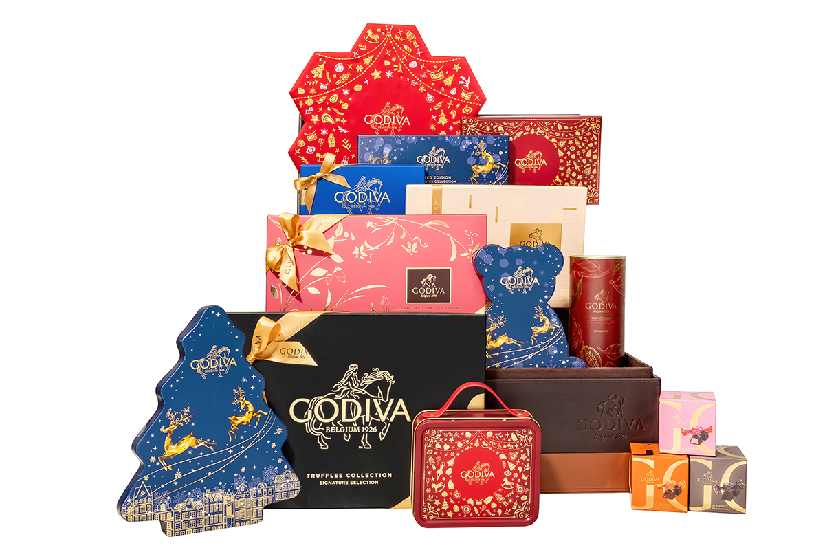 GODIVA並帶來多重限時禮遇,即日起於專門店及網店購買任何聖誕系列 (禮籃除外),單一消費折實價:滿HK$1,380,可獲贈巧克力餅乾12片裝乙盒 (價值 HK$179) 或巧克力軟雪糕券2張 (價值 HK$118);滿HK$3,800,可獲贈金裝巧克力心形禮盒12顆裝 (價值 HK$399);滿HK$6,500,可獲贈片裝巧克力禮盒60片裝 (價值 HK$739);滿HK$8,000,可獲贈巧克力珠寶禮盒30顆裝乙盒 (價值 HK$1,049)。