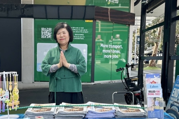 「我來到墨爾本後,很快就加入了Box Hill向世人講真相的行列之中。無論嚴寒酷暑,還是風雨交加,從未間斷。」她平和地說。