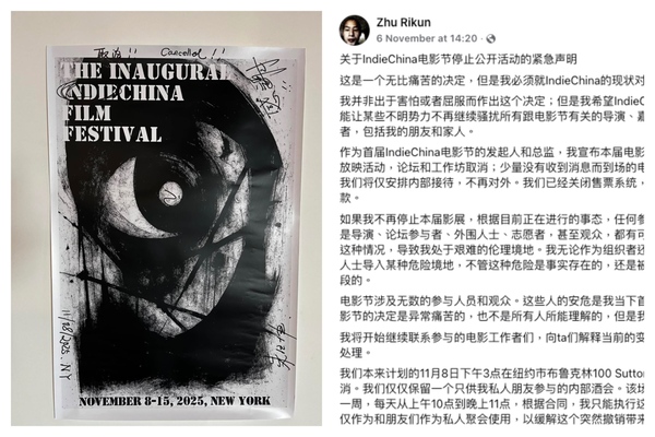 中共跨國鎮壓又添一例。原定於11月8日在紐約開幕的首屆「IndieChina電影節」(獨立中國電影節)停辦,發起人兼總監朱日坤表示,參加電影節的人士持續受到不明勢力騷擾。人權組織表示,這是中共跨國鎮壓的新例證,呼籲各國政府正視並對抗中共審查。